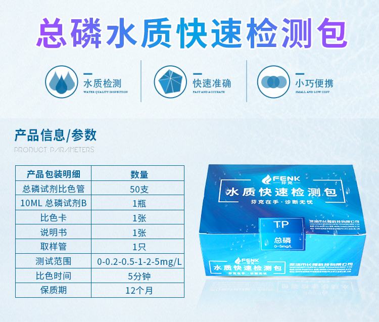 3.水體中磷主要以較穩(wěn)定的磷酸根離子形式存在,故本產(chǎn)品以測定磷酸根離子來判斷水中總磷含量。