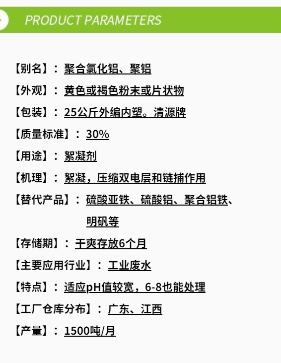 1.簡稱聚鋁一種凈水材料,無機高分子混凝劑
